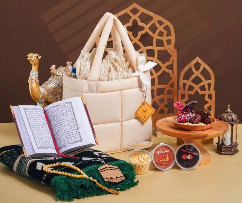 Sambut tamu tanpa repot packing. Paket eksklusif berisi Air Zam-zam, Kurma pilihan, Kismis, Kacang Arab, dan Cokelat Arab. Kemasan mewah, siap dibagikan